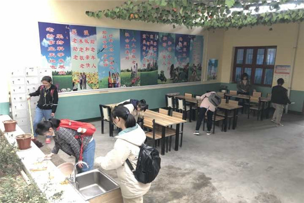 在老人到来之前,志愿者们便提前到达了“幸福院”,对老人们的娱乐、休闲的场所进行了卫生清扫。志愿者们分为两拨,一拨志愿者将桌子上物品收拾整齐,桌椅归位,书籍归类放好,并用抹布抹去桌面灰尘,将棋盘等娱乐设施擦洗干净;另一拨志愿者则用扫把,拖布,抹布全面的清扫了“幸福院”的地面以及栏杆扶手,使整个“幸福院”焕然一新。每位志愿者在清扫中找到了自己的劳动岗位。勤勤恳恳地奉献着自己一份的力量,一份热情。忙碌中说说笑笑,不亦乐乎。忙碌的身影成了敬老院一道亮丽的风景,大家的义举受到了敬老院老人们的一致赞许。经过一上午的努力,志愿者们将一个更为干净、整洁的“幸福院”交还给了这里的老人们。