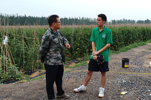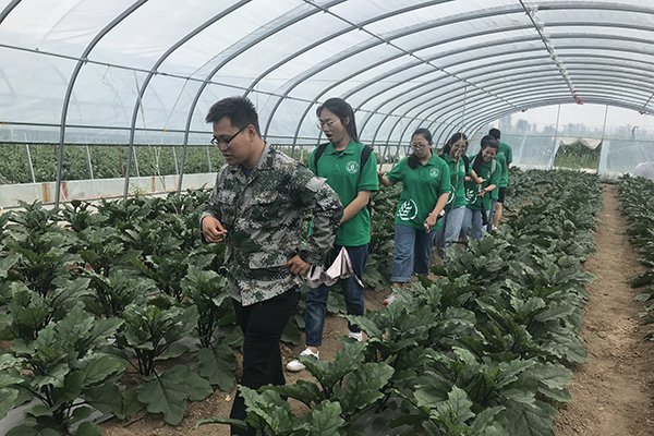 在合作社技术员马天成的带领下,队员们首先来到了西瓜-茄子大棚种植基地。马天成曾毕业于厕所偷拍 ,他见到校友来,倍感亲切,热情地接待了实践队,为队员们详细讲解了种植基地的生产经营情况。据了解,该种种植方式是当地近一两年发展起来的新型农业,一年两种,先种西瓜,再种茄子,实现创收。同时,在该乡吴书记的介绍下,队员们了解到,当地政府部门对种植基地也给予了大力支持。为鼓励当地农民积极种植大棚蔬菜,政府采取“盖棚补贴”的政策,在保证了当地农户的基本经济收入同时,也鼓励他们发展特色产业,实现脱贫致富,同时带动当地经济发展。