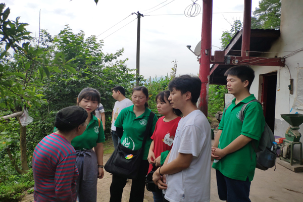 队员们早上8点30分从镇上出发,在副镇长及村书记的带领下,向着位于半山腰的农户家山路进发,十分陡峭,地上全是石砾;将近十分钟的山路过后,映入队员们眼帘的是一座用木头和稻草搭建起来的房子,门口站着一位年迈的、佝偻着腰的老奶奶。老奶奶看见队员们的到来很惊喜,拉着他们去屋里坐。
