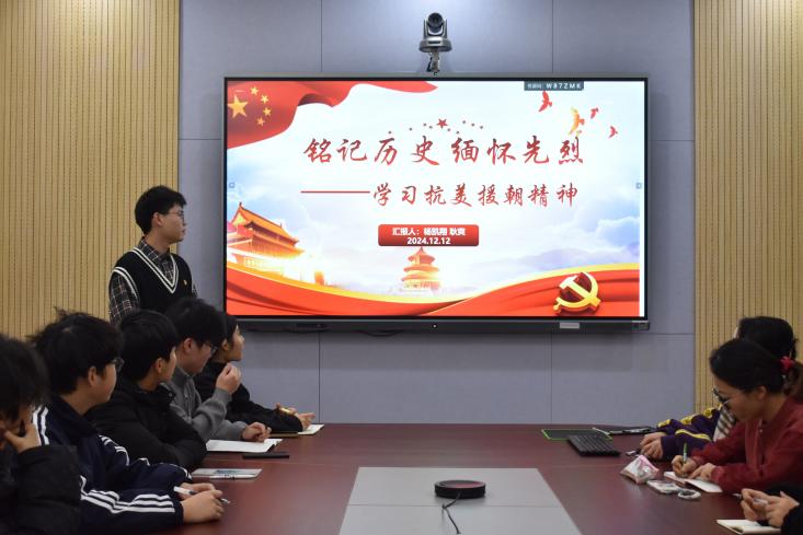 活动最后,由党支部书记师筝同志对本次学习进行了总结。她强调,抗美援朝精神是中华民族宝贵的精神财富,是激励我们不断前行的强大动力。作为新时代的青年党团员,我们要继承和发扬这种精神,将其转化为推动学习、服务同学的实际行动。同时,她也希望大家能够继续保持学习的热情和动力,不断提升自己的思想政治素质和业务能力。