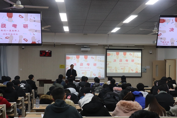 曹书记首先对同学们积极准备,勤奋复习的状态给予了肯定和赞扬,并对考研同学提出了三点要求:第一,幸福生活是奋斗出来的,曹书记指出本硕博就业的门槛是截然不同的,社会越来越需要更高层次的人才,只有努力奋斗才能全面提升自己的素质和能力;第二,青年学子当立鸿鹄之志,曹书记从自身的经历出发讲到,支撑人民身体健康的肉蛋奶在几十年前是十分稀缺的,现如今随着畜牧业的发展,膳食结构的改善全面提升了我国人民的生活,所以考研也是在为了我国的畜牧业、脱贫攻坚、乡村振兴、经济发展战略作贡献,奉献自己的一份力量;第三,人生要放大自己的格局,开拓自己的视野,只有拥有大格局,才能有大成就,要把自己置于中华民族伟大复兴的中国梦的深度实践当中,要永远保持一颗中国心,学习既是为了我们自己的幸福生活,更是为了我们的国家和我们民族。