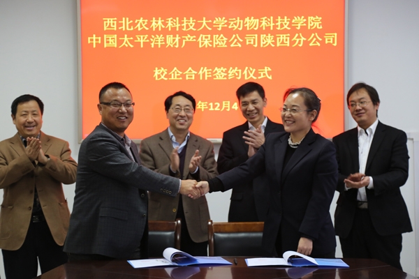 随着国家农业扶贫力度的加强,中国太平洋财产保险公司陕西分公司应对国家战略调整,拓展自身业务,积极探索开展农业领域特别是动物养殖业领域的保险业务研究及创新,将给涉农养殖企业、农户提供更为全面的生产经营风险保障。同时为了拓宽毕业生就业渠道,在实践中培养创新型的畜牧管理人才。经双方协商,本着平等合作、优势互补、互惠互利、资源共享、共同发展的良好愿望,建立全面的校企合作关系。