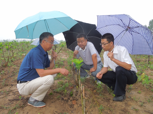 在千阳基地调研期间,苏超研究员一行,对果桑基地桑树剪伐后的发芽情况进行了调研,并对果桑园的日常管理及下一步的试验工作进行了安排。