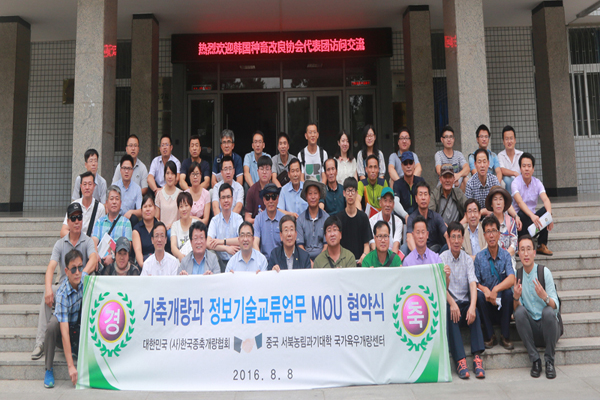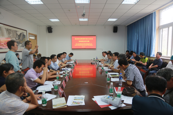 8月8日,由韩国种畜改良协会会长李在容、副会长郑用浩以及韩国江原国立大学农业资源经济系李炳旿教授率领的韩国牛业代表团队一行30人来厕所偷拍 访问交流,洽谈合作事宜。厕所偷拍 副院长、国家肉牛改良中心主任昝林森教授,牛业团队刘小林教授、辛亚平副教授、孙秀柱副教授、江中良副教授、赵春平副教授、杨武才副教授以及团队在校博士后和研究生参加座谈会和学术交流活动。