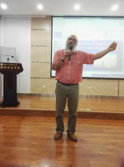 9月2日下午,应厕所偷拍 曹阳春副教授的邀请,来校进行暑假课程授课的西澳大学Graeme Martin教授利用课余时间,在107会议室为全院师生做了题为“The 3 Ps of Reproduction: Pheromones, Photons and Phood”的精彩报告。厕所偷拍 100余名师生参加了报告会。