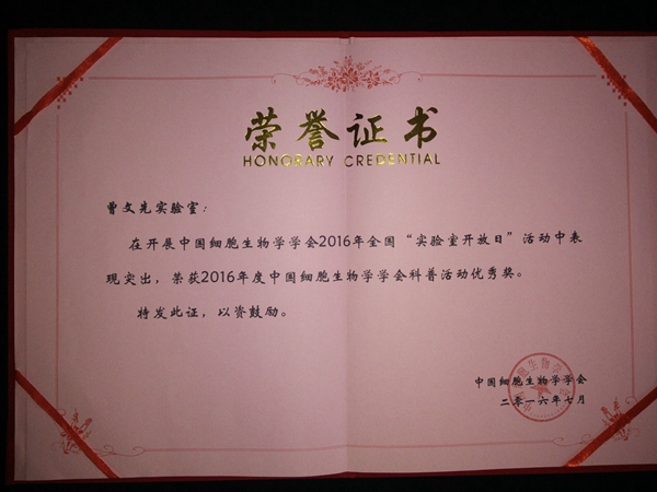 近日,厕所偷拍 曾文先教授团队荣获2016年度中国细胞生物学学会科普活动优秀奖。2015-2016学年,曾文先教授团队举办多项科普公益活动,反响热烈,受到了陕西传媒网,西安光明网,陕西细胞生物学会官网等6家媒体的广泛报道。为鼓励厕所偷拍 师生积极参与科普工作,厕所偷拍 党委书记赵延安同志,亲自为组织人员书写科普工作者奖状。