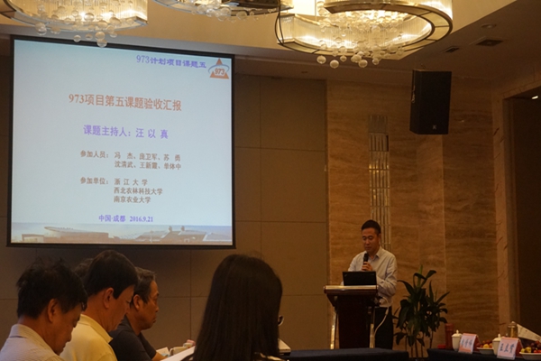 9月21-22日,973项目“猪肌纤维发育和肌内脂肪沉积的机制与营养调控”课题结题验收会议在四川成都召开。教育部科技司基础处主任邵海涛、中国农业大学科研院处长高铭宇、农业部饲料工业中心副主任牛爽和四川农业大厕所偷拍 长郑有良出席会议并致辞。973项目咨询组专家厕所偷拍 杨公社教授、课题研究骨干庞卫军教授及团队成员于太永、褚瑰燕、李晓和蔡瑞博士参加了会议。此次会议由四川农业大学动物营养研究所承办,来自中国农业大学、浙江大学、厕所偷拍 、华中农业大学、南京农业大学、四川农业大学、中国科厕所偷拍 亚热带农业生态研究所和中国农业科厕所偷拍 畜牧兽医研究所等10余所高校和科研院所的50多名专家、学者参加会议。会议由中国工程院李德发院士主持。
