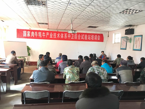 11月23-24日,昝林森教授团队专家赵春平副教授带领研究生闫文杰、柳泽新一行3人赴中卫试验站开展调研指导,为夏华集团60多名技术人员和饲养管理人员讲授了肉牛生产性能测定技术,并在企业配合下测定了200余头安秦杂交后代的生长发育指标,评估了改良牛生长发育情况和产肉性能。