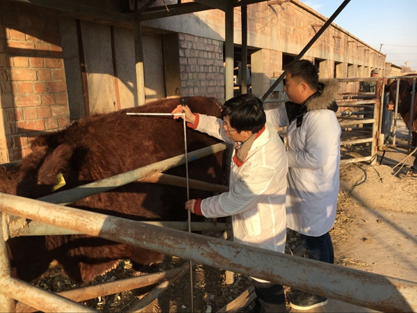 李长安教授在宁夏海源华润公司对病牛进行现场诊断治疗