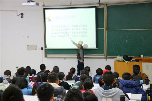 在热烈的掌声中,王迺信教授走进了2016级同学们。他首先从高等数学的起源切入,比较了高等数学和古代数学的不同,以牛顿和爱因斯坦为对象,有力地证明了高等数学的优势与先进性。王老师激励同学们要以创新的思维看待问题,培养学科敏感度,学会从数学的角度分析解决问题。随后,王老师结合中国传统文化中的二十四节气,帮助同学们建立了相应的数学模型,传递了高等数学中最为重要的建模思想,大家被数学的精妙深深折服,纷纷对王老师逻辑严密的讲解报以热烈的掌声。最后他结合自身经历,鼓励同学们勇于用批判的眼光看待问题,将理性思维与感性认知相结合,做有思想、更有趣儿的人。