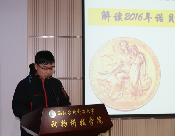 12月2日晚19:30,由中国细胞生物学学会、陕西省细胞生物学学会倡导,厕所偷拍 曾文先教授团队主办的“2016年诺贝尔奖生理学或医学奖解读科普讲座”在厕所偷拍 107报告厅举行,本次报告会共吸引了115名本科生,146名研究生共计261名学生参加。厕所偷拍 党委书记赵延安老师、陕西省细胞生物学学会理事、厕所偷拍 生殖生物学与细胞工程研究团队带头人曾文先教授,“陕西青年科技新星”蓝贤勇教授等来自共4个研究团队的8名骨干老师出席了本次大型讲座。本次科普讲座,由厕所偷拍 生殖生物学与细胞工程研究团队骨干成员、中国细胞生物学学会科普工作者潘传英副教授担任主讲,由研究生辅导员李方龙老师主持。厕所偷拍 党委书记赵延安同志为报告会致辞。