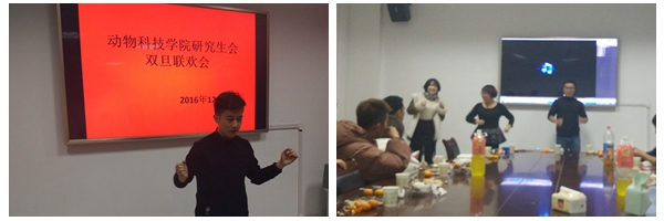 随后,联欢会在一段精彩绝伦的机械舞中拉开序幕,有力的动作配合柔和的音乐,演绎了别样风趣。各个部门的表演也别出心裁:一首老歌《萍聚》让大家感受到年代的沧桑感;一首《朋友》让大家更加珍惜在研究生会的友谊和今后一起的日子;奇特的舞蹈夹杂着独特的自我介绍,让研究生会成员眼前一亮,回味无穷......联欢中的游戏环节更是笑点频出,欢乐无限,听“水”抓手指紧张刺激,听歌猜歌名突破脑洞,乐不可支,惩罚环节花样百变也为联欢增添了别样的乐趣。