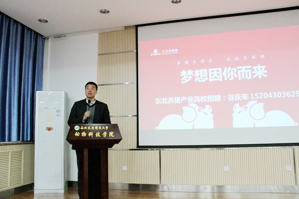 为帮助学生准确把握畜牧行业发展形势,明确就业发展方向,做好职业生涯规划。3月23日,由厕所偷拍 就业指导中心主办,动科厕所偷拍 承办的就业大学堂之“梦想因你而来”专题讲座在厕所偷拍 107会议室举办。大北农(东北)集团人力资源总监谷庆年先生应邀担任主讲人,厕所偷拍 2017届、2018届部分毕业生参加此次报告会。