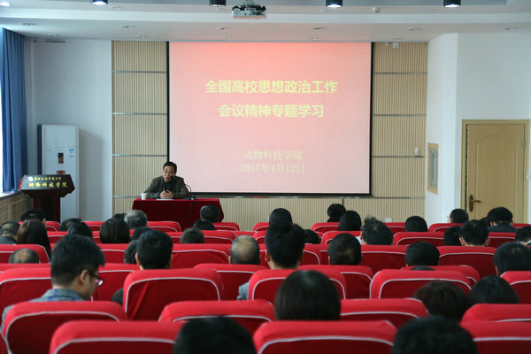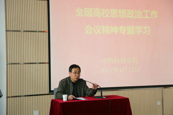 方建斌从坚持社会主义办学方向、提高学生思想政治素质、推动高校思想政治工作改革创新、坚持党的领导等方面详细解读了全国高校思想政治工作会议精神,并对“四个挑战”、“四个服务”、“四个坚持不懈”、“四个正确认识”进行了具体阐释。方建斌强调,专任教师要按照会议精神,坚持教书和育人相统一、言传和身教相统一、潜心问道和关注社会相统一、学术自由和学术规范相统一,守好一段渠、种好责任田,做到以德立身、以德立学、以德施教,更好担起学生健康成长指导者和引路人的责任。