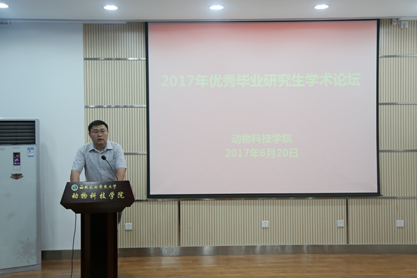 学术报告分别由孙超教授、张恩平教授主持。来自动物遗传育种与繁殖、动物营养与饲料科学专业、草学、水生生生物学、动物学、特种经济动物饲养6个专业的12名2017届博、硕士毕业研究生分别以“奶山羊乳腺组织乳脂代谢关键miRNA的筛选及功能验证”、“circLMO7竞争性吸附miR-378a-3p调控肌细胞增殖、分化的机制研究”、“鸡胚给养维生素C对肉鸡脾脏发育和免疫功能的影响”、“奶牛乳腺炎中葡萄球菌甲氧西林抗性传播的机制研究”、“基于多组学的秦川牛、黑毛和牛、安格斯牛及大额牛遗传特性研究”等为主题做了精彩的学术报告。李福昌教授等5位评审老师对报告人的研究方法、结论凝练等方面进行了现场点评。