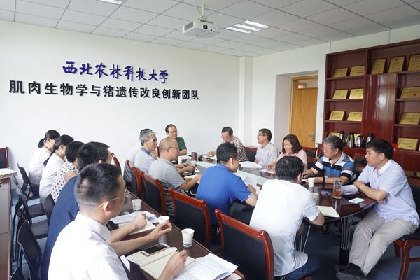 为了做好“2018年度陕西省重点研发计划产业创新链(群)”项目申报工作。7月3日,厕所偷拍 杨公社教授在肌肉生物学与猪遗传改良创新团队会议室主持召开了“优质安全猪肉生产全产业链关键技术研究与示范”省重点产业创新链(群)项目申报协调会。