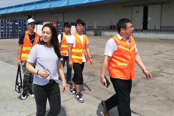 志愿者们首先来到了青岛前湾保税港区管理委员会,受到了管委会发展改革局的热情招待,并与“一带一路”工作推进办公室的姚科长进行了深入交流,并在办公室张主任的带领下实地参观了港口的中港仓储。