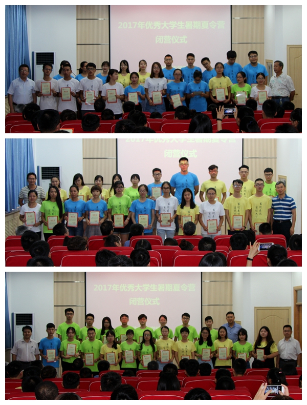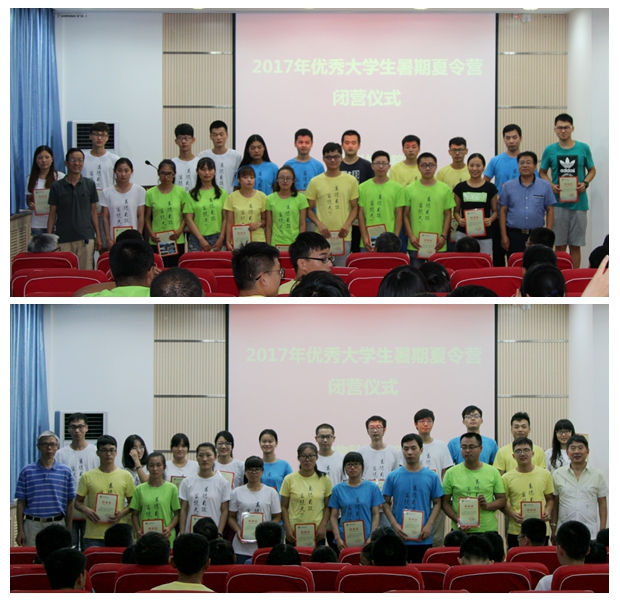 伴随着轻快悠扬的旋律,赵延安书记、刘小林教授、曾文先教授、孙世铎教授、吉红教授、蓝贤勇教授、董武子副教授、孙秀柱副教授、杨培志副教授、薛虎平副教授分别为营员颁发了结业证书并合影留念。2017年优秀大学生夏令营活动圆满闭幕。