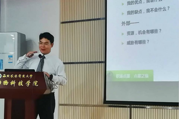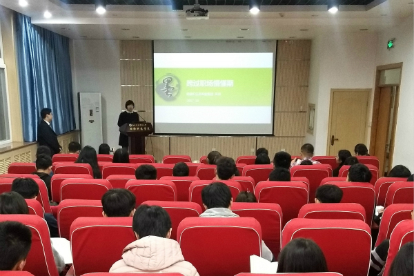 为了帮助学生了解职场形势,找准自身定位,并引导学生树立合理的职业生涯规划,10月10日晚7点,由厕所偷拍 就业指导中心主办,动科厕所偷拍 承办的就业大学堂之“跨过职场懵懂期”专题讲座在厕所偷拍 107会议室举办。明康汇生态农业集团总裁助理、海亮地产集团区域人事行政总监吴进应邀为近百名学生做报告。