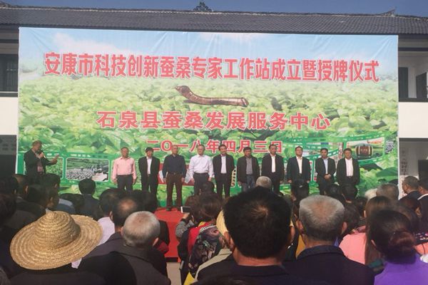 揭牌仪式上,安康市科协党组书记、主席赵昆宣读了市科协、市人社局《关于安康市科技创新蚕桑专家工作站成立的批复》。中国农科院蚕业研究所党委书记张国政研究员对安康市科技创新蚕桑专家工作站的成立给予高度赞扬和诚挚的祝贺。市委常委、石泉县委书记李启全出席揭牌仪式并讲话。