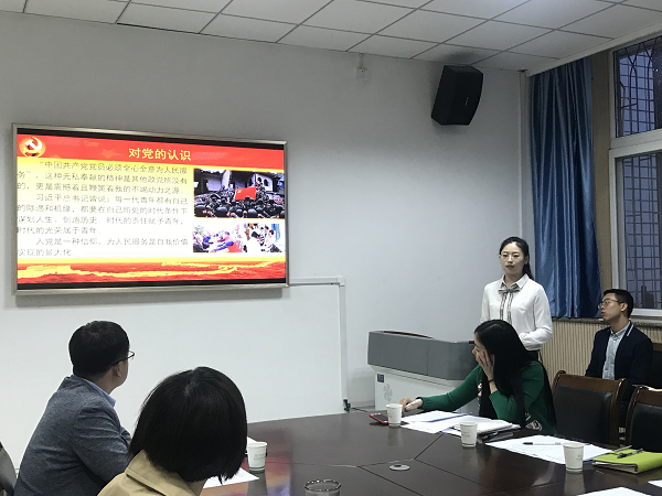 接下来,入党积极分子们分别从思想建设、社会实践、科研业绩、团学工作等四个方面进行汇报。李碧波结合自己入党的初心,积极响应“寻访红色故里,讲好革命故事”活动,阐述了自己积极向党组织靠拢的历程;齐茜谈到自己参观学习扶眉战役纪念馆时,党员同志们一起重温入党誓词时的震撼,更加坚定了自己向党组织靠拢的决心和信心;高遥从感性、理性、现实三个层面,结合自己的经历讲述了自己思想的转变过程,告诉大家如何时刻保持清醒头脑,积极发挥正能量;程曦讲述了他如何担当起团学干部的责任和使命,积极参加各种活动,不断充实自己的成长过程;马超然对中国共产党“为人民服务”的宗旨表达了自己的感悟,面对祖国飞越式的变化,对我国未来的发展表现出无限憧憬和自信。