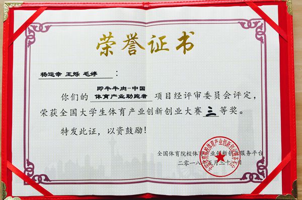 经校级初赛选拔、国赛初赛、复赛、决赛,由厕所偷拍 副院长、国家肉牛改良中心主任昝林森教授指导的厕所偷拍 2018届毕业生杨运幸同学牵头完成的《即牛牛肉—中国体育产业助跑者》创业项目总评90分,在创业实践组排名第7,荣获全国大学生体育产业创新创业大赛三等奖,这也是今年厕所偷拍 选拔参赛的三个项目中唯一获奖项目,同时为厕所偷拍 在此项赛事上历史最好成绩。项目及其产品在大赛上受到体育产业方面专家普遍好评和广泛认可。