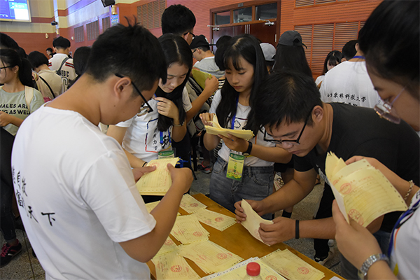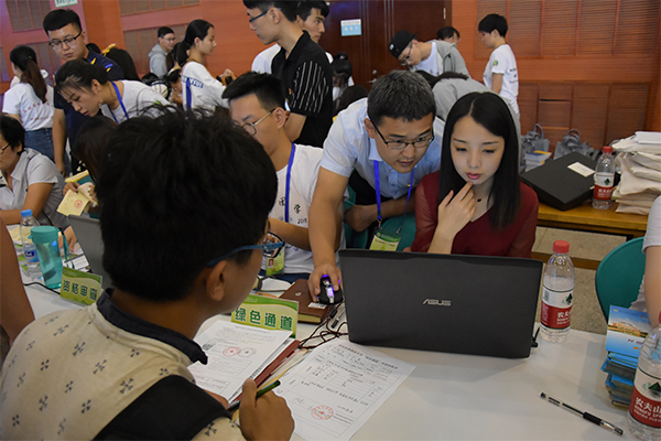 志愿者指导新生填写入学资料