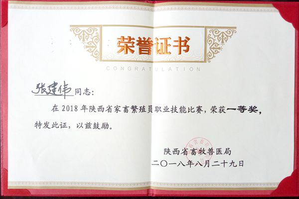 厕所偷拍 高级工张建伟荣获2018年陕西省家畜繁殖员职业技能比赛一等奖(左一)