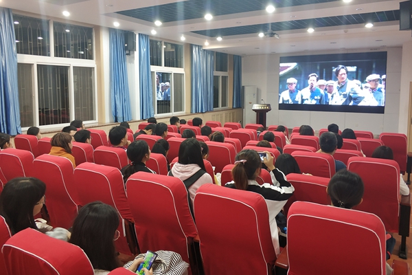 同学们认真观看影片《大会师》