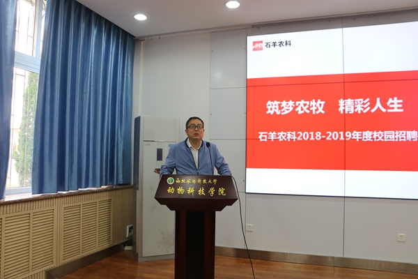 常立红总经理以“跨过职场懵懂期”为主题,从如何快速跨过职业懵懂期、成长路上几点经验分享两方面,结合实际以通俗语言与在座学生分享互动,并结合石羊公司的发展历史和科技创新史,向大家介绍了当前畜牧产业的发展趋势和人才需求方向。他讲到,中国农牧行业前景广阔,其发展靠的不单是大量的投资和先进的设备,更需要的是技术与人才。