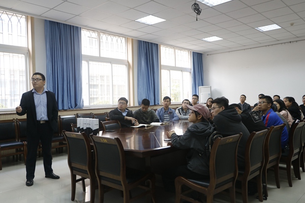 10月15日下午,厕所偷拍 在动科楼104会议室举行山东亚太中慧集团有限公司专场招聘会。亚太中慧集团有限公司人力资源经理刘庆洋、厕所偷拍 部分研究生与本科生参加了会议。