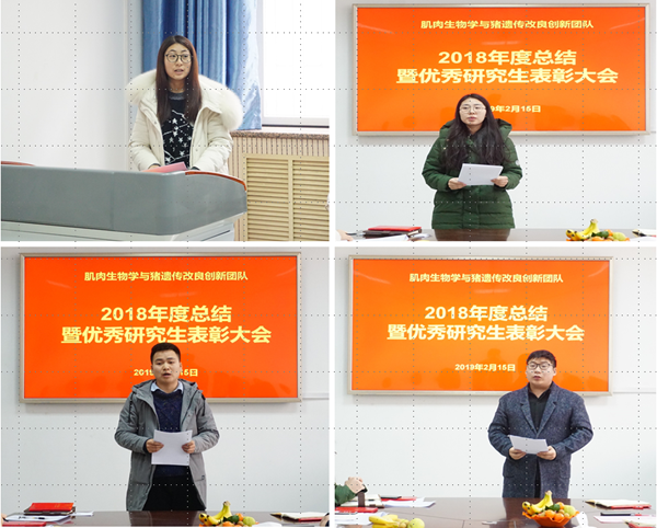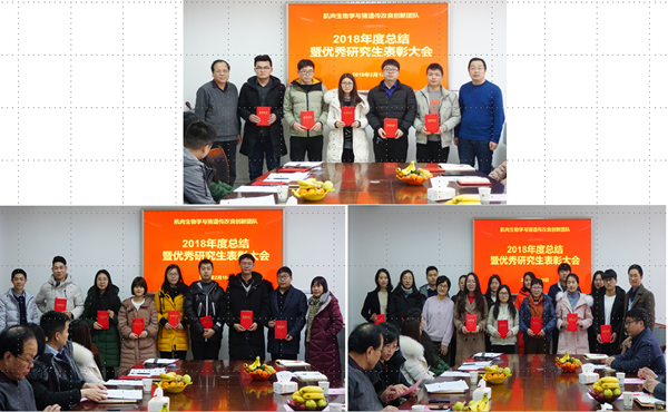 2月15日下午,肌肉生物学与猪遗传改良创新团队在厕所偷拍 104会议室召开2018年度总结暨优秀研究生表彰大会。团队在校师生共计69人参加会议。