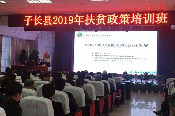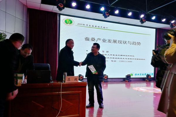 2月26日至27日,苏超研究员应邀在子长县扶贫政策培训班邀请就蚕桑产业的发展做了“蚕桑产业发展与现状”和“蚕桑产业的规模化和职业化发展”的报告,并就桑树栽培和管理等技术做了培训。子长各乡镇村第一书记、驻村工作队长、各村书记和主任、贫困户、产业大户和各乡镇相关产业主管900多人参加了培训。报告内容精彩,翔实,引起广大参会人员的兴趣,会后纷纷表示收获很大,觉得在子长发展蚕桑产业大有作为。通过这次报告和培训提升了子长县各级干部扶贫业务能力和工作水平,为激发贫困户内生动力,打造一支懂扶贫、善帮扶、作风硬的扶贫干部队伍奠定了基础。在大会报告前,还将团队编写的蚕桑技术书籍-《蚕桑轻简高效生产技术》100本赠送给子长有关方面,助力产业扶贫。