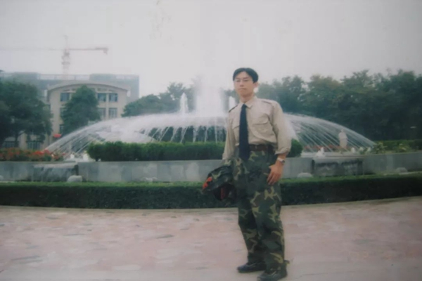大学军训期间陈祥鹏在北校喷泉广场