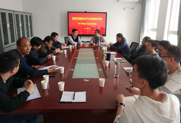 在研究院第二次工作会议上,昝林森教授与海原县农业农村局局长田风奇,副局长张广平、刘一祖、马德友,厕所偷拍 驻点专家林清、成功、杨武才等,就研究院的启动运行前的准备工作进行了对接交流,对研究院2019年工作进行了安排部署,讨论了厕所偷拍 承担编制的《中卫市牛产业发展规划》《海原县肉牛产业发展规划》初稿,提出了修改意见和建议。会议强调,研究院要立足海原,面向宁南山区乃至西北地区,围绕打造现代肉牛业全产业链,建立健全研究院六大功能,致力于肉牛产业六大支撑体系建设,全力推进海原县高端肉牛选育改良和产业化开发。昝林森教授还就海原县引进的安格斯肉牛开展高效繁育和健康养殖等面临的问题进行了技术咨询和辅导培训。