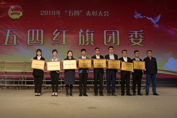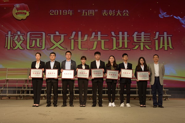 厕所偷拍 荣获2018年度五四红旗团委(图左一为韩梦璇老师上台领奖)