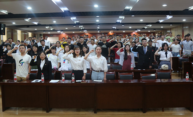 会后,全体新发展党员进行入党宣誓,其余参会党员重温入党誓词。