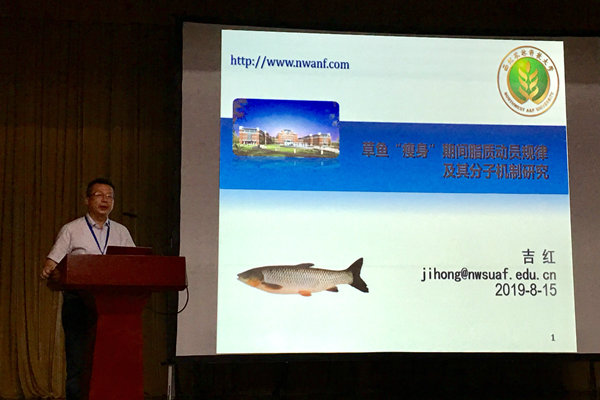 吉红教授做了《草鱼‘瘦身’期间脂质动员规律及其分子机制研究》的专题报告,介绍了团队为阐明草鱼在停食期间能量利用和机体适应机制所开展的工作,引起与会代表的广泛关注。在研究生论坛上,博士研究生武文一做了题为“越冬饥饿后再投喂不同蛋白及脂肪水平饲料对草鱼生长性能、体组成和健康状况的影响”的报告,在51位来自科研院所的研究生中脱颖而出,获得研究生报告二等奖。