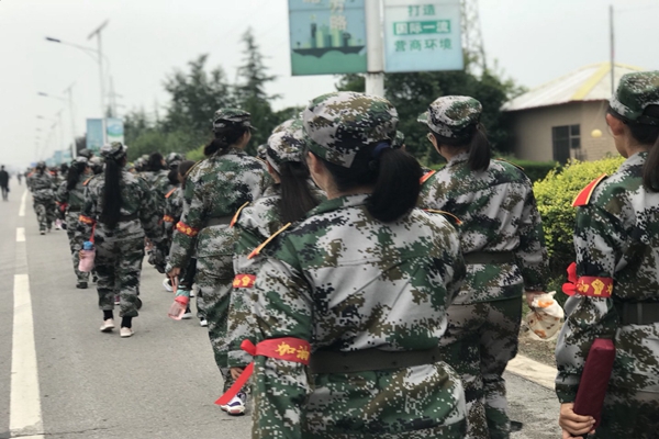 整齐划一的拉练队伍
