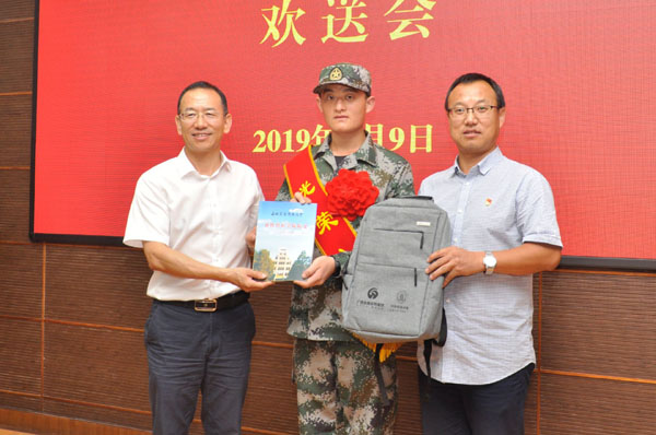 闫祖书副书记为新入伍的史建斐同学佩戴红花
