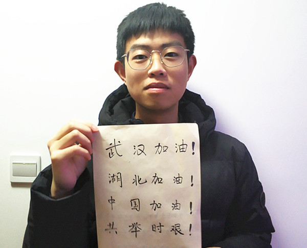 动科1604班王世康(武汉)说:身为一个湖北武汉人,我感受到了医生们的努力,感受到了同学、老师、辅导员的关心,感受到了中国人战胜疫情的决心。一纸命令 :封城;一声呐喊: 上千医护人员在除夕夜奔赴疫情灾区;一个号召: 全民春节不出门;一声动员: 数百辆挖掘机几天的时间建两所医院。我相信,只要大家齐心协力,一定能够以最快的速度打赢这场战斗。