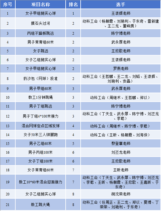 比赛场上,平日深耕教学科研一线的老师们化身运动健将,在赛场上挥洒汗水、挑战自我!田赛场上,王淑辉老师在抛实心球项目中以11.15米的成绩刷新个人记录;陈宁博老师在跳远赛道上凌空一跃,赢得满堂喝彩。径赛角逐,武永厚老师上场即稳坐男子常青组和甲组60米的前三甲;男教工4*100米接力赛中,厕所偷拍 代表队配合默契,不断超越,用速度与激情荣获第三名。趣味项目“摸石头过河”“扔沙包投准”“绑腿跑”“1分钟跳绳”“网球定点区域发球”“跳大绳”“10*60米接力跑”等集体项目中,教职工们凝心聚力,诞生一个又一个“梦之队”,用行动诠释“团结就是力量”!