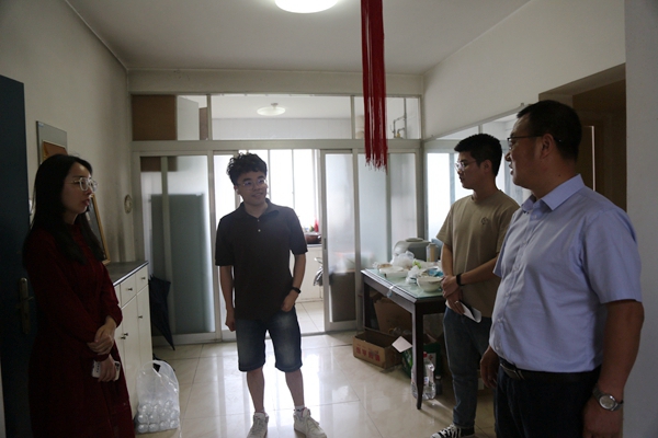 王力副书记一行先后看望了博士生金良梁、硕士生刘国豪、硕士生冯林,以及本科生程昭翔、米金秋,他详细了解了校外住宿学生的居住环境、学习情况、日常生活状况,与学生们进行了深入交流,他叮嘱同学们注意校外住宿的人身安全、用气用电安全,在学习和生活上遇到问题要及时向家长和老师们反馈。同时要求学生们严格遵守疫情防控要求,多通风,勤洗手,在公共场合佩戴口罩,时刻紧绷疫情防控这根弦,及时做好每日健康填报、核酸检测等工作。他鼓励同学们营造整洁卫生的宿舍生活空间,加强体育锻炼,保持乐观的心态,充分利用时间学习、讲方法,讲效率,克服自身的不足,养成自强自律的好习惯,以勤勉好学、求实认真的学习态度为实现自己的奋斗目标而不懈努力。
