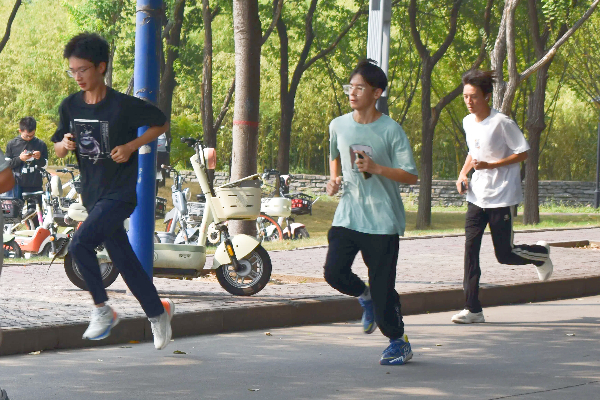 在体育辅导员陈艳教授的指挥下,越野赛正式开始,运动员们一齐奋力向前奔跑。随着比赛的进行,差距也逐渐显现,但是运动员们都咬牙坚持着向着终点跑去。汗水尽情挥洒在初秋的校园,运动员强健的步伐和持之以恒、不言放弃的拼搏精神,形成了一道靓丽的风景线。完赛后,工作人员递过来的热水,也为本次比赛增添了一股温暖。