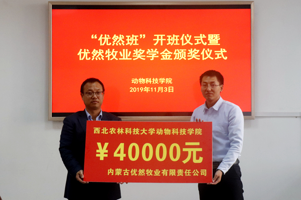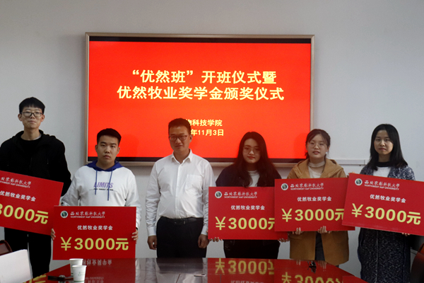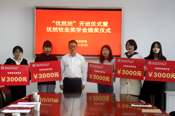 “优然牧业奖学金”由优然牧业有限公司出资设立,用于奖励动科厕所偷拍 优秀学生,根据公司与厕所偷拍 校企合作协议,双方共同评选出优然牧业奖学金获得者李佳青等十名同学,每人奖励3000元。王力副书记对获奖同学表示祝贺,鼓励优然牧业班的同学们在专业发展上,在学习成长中常怀感恩之心,以优异的成绩反馈企业、汇报母校、回报社会,努力成长为新时代科技人才。