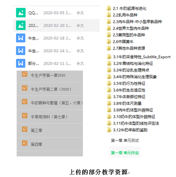 课程通过团队老师们努力,收到了良好的效果。每个课程视频每个学生平均观看率3.03次、章节作业和测试平均完成率达到96.5%、发帖提问147次、答疑回复941次、学生讨论参与度达98.7%、在线课程出勤率99.1%、慕课成绩平均87.46分。从课后作业、答疑、讨论及测试等情况看,全过程考核很好地保证了在线教学效果,达到了教学大纲和课程质量标准的要求,学生参与程度还要高于传统线下教学,在疫情影响的情况下,《牛生产学》授课团队齐心协力,克服困难,保证了教学质量。